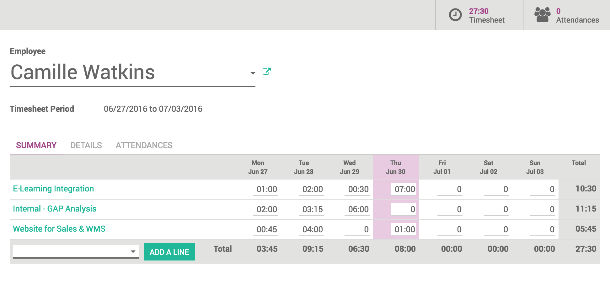 Keep track of the employee hours worked and sort by project, client, or tasks. Easily access statistics to record and analyze timesheets as well as check each employee's attendance. Integrated accounting automatically posts reports based on time spent in projects providing real-time data.